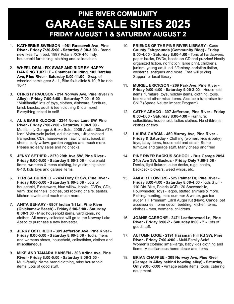 🔹 Pine River Community Garage Sales